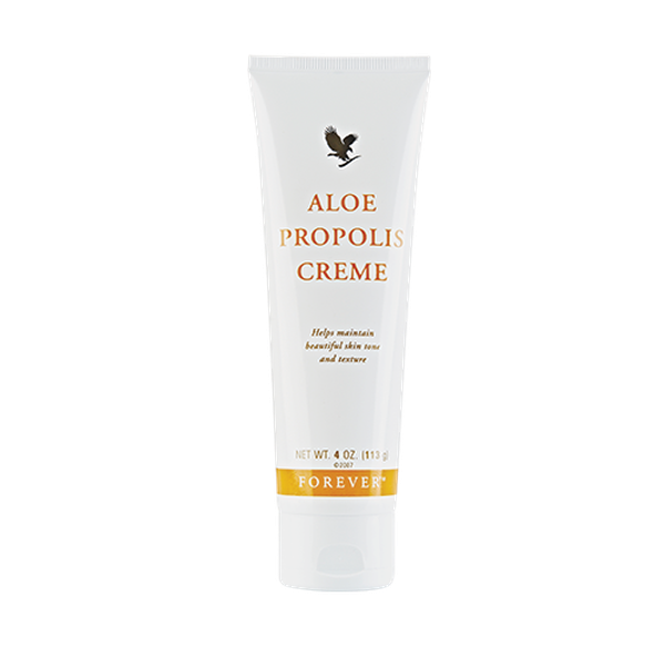 The best of aloe and the hive • Rich blend of aloe vera and bee propolis • Helps maintain beautiful skin tone and texture • Nourishing and moisturising • Helps soothe skin • Vegetarian friendly Only Forever could create a product as inventive as Aloe Propolis Creme. This nourishing cream combines two of our most prized ingredients: pure inner leaf aloe vera gel and bee propolis. Together, these two fundamental elements help your skin maintain beautiful tone and texture. Bee propolis is a resinous substance that bees create to fortify their hives. This powerful substance also has properties that creates a natural barrier on your skin, locking in the natural skincare benefits of aloe, and helping to rejuvenate skin for a smooth, supple look and feel. Aloe vera, combined with vitamins A, E and C, works to nourish and moisturise the skin, whilst added Chamomile enhances the soothing power of Aloe Propolis Creme. It’s easy to see why Aloe Propolis Creme is one of Forever’s flagship products. Treat your skin to the soothing, nourishing and protecting power packed inside every bottle. *Please note packaging at Forever Centres may vary