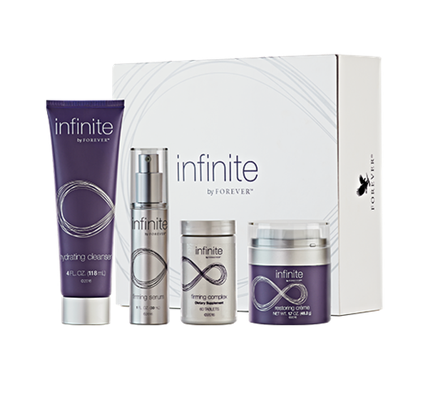 Infinite by Forever is a complete anti-aging skincare set for men and women. The set contains four products that work together perfectly: hydrating cleanser, firming serum, restoring crème and firming complex. This powerful skincare helps reduce the appearance of fine lines and wrinkles and gives a radiant, hydrated skin. Infinite by Forever is based on aloe vera and is reinforced with various plant extracts. While creating the formulas we used the latest skin technology. With infinite by Forever you will see and feel the difference! The set contains a brochure with detailed information about the products..